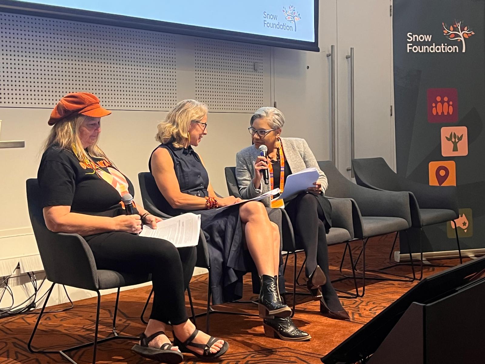 Snow Foundation CEO Georgina Byron, Snow Foundation’s First Nations Advisor Adjunct Professor Maree Meredith, and Associate Professor Vicki Wade then explored the role of philanthropy in this work.