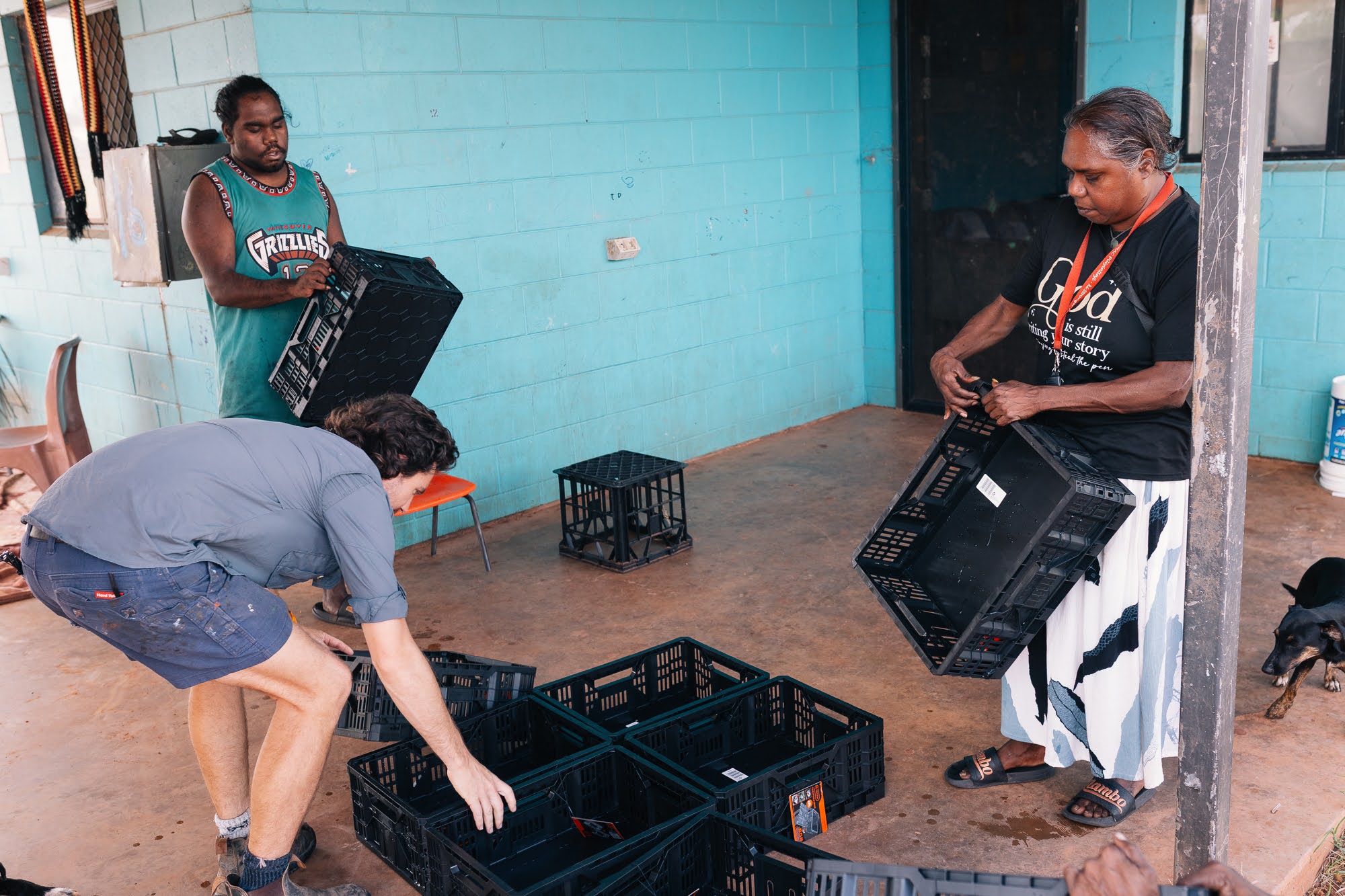 In Tennant Creek, we travelled together with Nicholas Marchesi OAM and Benjamin Knight from A Curious Tractor, where their Goods project—co-designed with Aboriginal communities—is delivering practical, empowering solutions. One highlight was the Greate Beds: innovative, stackable crate beds with memory foam and a washable mattress topper. Ideal for the tough conditions of the NT, these beds are easy to assemble, wash, and move—offering flexibility and dignity and healthy living in settings where both are often in short supply.